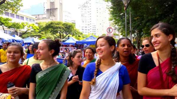 Преданные несли свое послание — празднование имен Бога. Собирая огромную аудиторию. «Бразилию обычно посещает большое количество туристов, но никогда как сейчас», — говорит участник харинамы и профессиональный футбольный комментатор Шри Кришна Мурти Дас. «Около 700000 человек со всего мира приехали на Кубок Мира. Отели переполнены, дороги забиты. Из Чили приехало 4000 машин и трейлеров. Три парня из Колумбии потратили год на то, чтобы приехать в Бразилию на рикше, чтобы только увидеть Кубок Мира. Это сумасшествие».