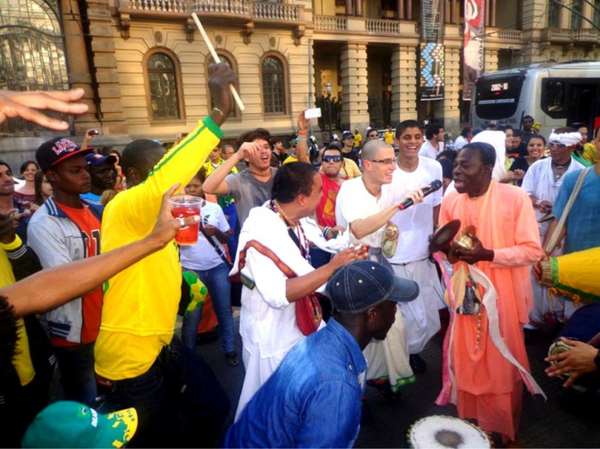 Не смотря на охватившую весь мир и в особенности Бразилию — как хозяйку Чемпионата мира по футболу, футбольную лихорадку, преданные ИСККОН, сострадательные ко всем обусловленным падшим душам дали огромному числу болельщиков Святое Имя. Во всех городах, в которых проходили матчи Чемпионата мира по футболу и близлежащих районах, проходила грандиозная харинама, которая своей мощью затмевала страсти на футбольных трибунах.