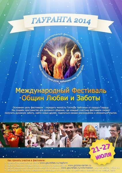 - Международный фестиваль Общин Любви и заботы «ГАУРАНГА» который пройдет с 21 по 27 июля
