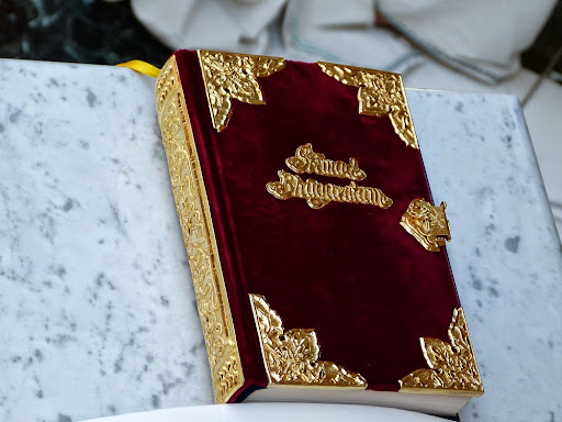 В знак почтения, каждый общинник предлагает скульптуре Шрилы Прабхупады цветы, которые кладёт на серебряные сандалии, и кланяется — женщины в пояс, мужчины — во весь рост.
