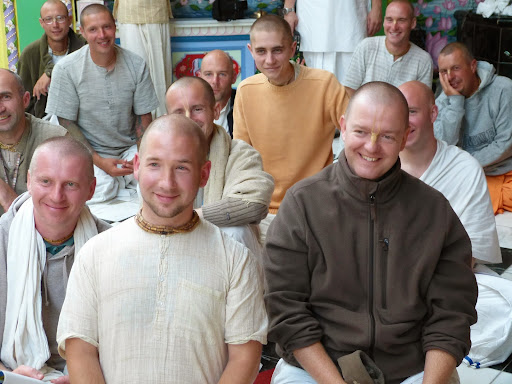 Многие из членов общины — бывшие монахи. (В ведической традиции каждый мужчина перед тем как жениться должен пройти через монашество и до женитьбы жить в целомудрии). Раньше они ходили по улицам, предлагали людям книги о Кришне.