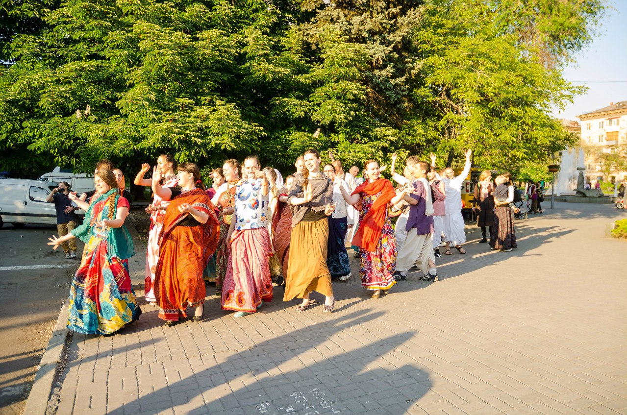 В воскресенье, 8 мая в Запорожье состоялась нектарнейшая харинама с участием наших гостей из Бердянска. Воскресная харинама отличалась своей массовостью и яркостью. Она подарила горожанам прекрасные впечатления и хорошее праздничное настроение.