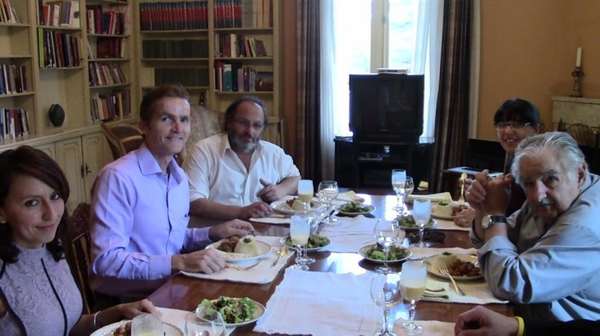 Президент Уругвая (справа) за вкусным вегетарианским обедом с Полем Рудни Тернером (второй слева) и другими.