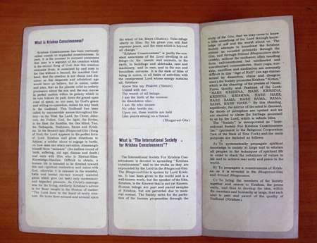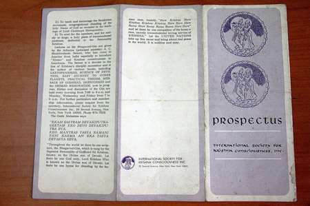 Были найдены также проспекты для первого храма ИСККОН в Нью-Йорке на 2-ой авеню, дом 26. Их заголовки гласили: «Что такого Сознание Кришны?» и «Что такое Международное общество Сознания Кришны?»